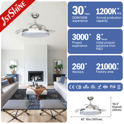 Wyciągający się wentylator sufitowy, średnica 42 cali, gdy się rozwija i 21 cali, gdy się składa. 3 ostrza akrylowe rozciągają się i wyciągają się automatycznie.