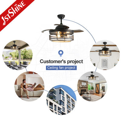 Wentylator sufitowy z oświetleniem, przemysłowy wentylator sufitowy, chowane łopatki, żyrandol w stylu vintage z klatką