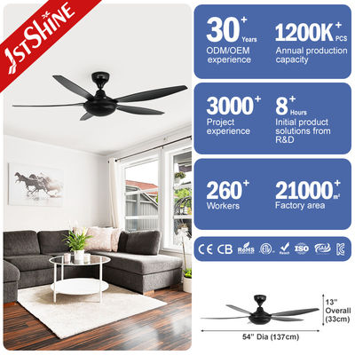 54-calowy silnik Dc czarny plastikowy wentylator sufitowy z 6 prędkościami zdalnego sterowania
