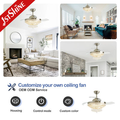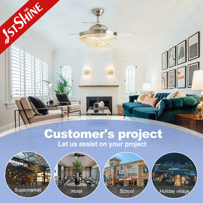 2Oświetlenie kryształowe: Kiedy światło jest włączone, blask wyciągalnego wentylatora sufitowego naprawdę świeci.Światło przechodzące przez kryształ pod osłoną lampy odbija się w wspaniałe i urzekające oświetlenie, rzucając hipnotyzujący blask, który zachwyca pokój.