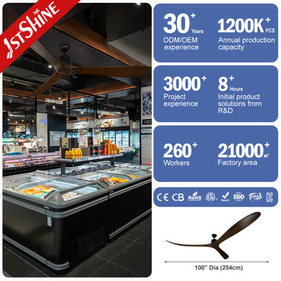 Ten duży wentylator sufitowy posiada elegancki, nowoczesny design i silny silnik prądu stałego, który zapewnia wyjątkowy przepływ powietrza.Trzy płytki masywnego drewna są ręcznie rzeźbione dla pięknego, naturalny wygląd, który uzupełni każdy wystrój.