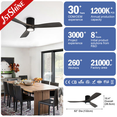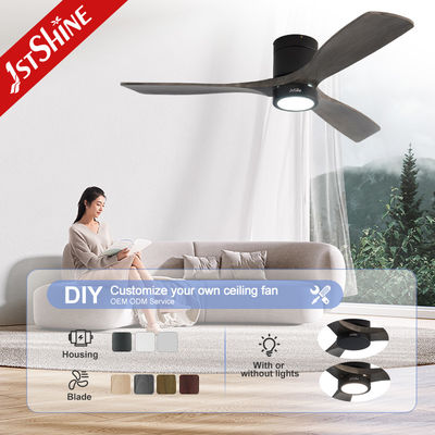 Dekoracyjne 3 naturalne drewniane ostrze Flush Mount Led Tuya Smart Sufit Fan Z Światłem