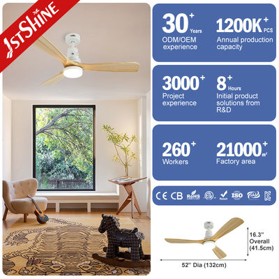52" Drewniany Wentylator Sufitowy z Silnikiem DC i Ściemnialnym Oświetleniem LED